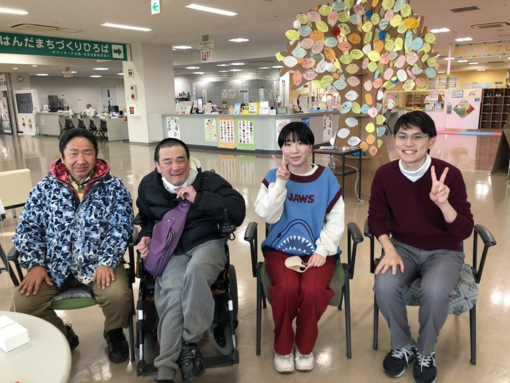 今は、障害を持っている方への支援や、誰もが生きやすい空間づくりに興味があります。 具体的には、秋田県で行われている「障害芸術活動支援事業」というイベントの運営に関 わっています。イベントでは、誰もが平等に参加できるように、手話通訳をつけたり、モニターに字幕を表示したりするなどのサポートをしています。みんなが同じように楽しめる環境をつくることを、今は頑張っています。