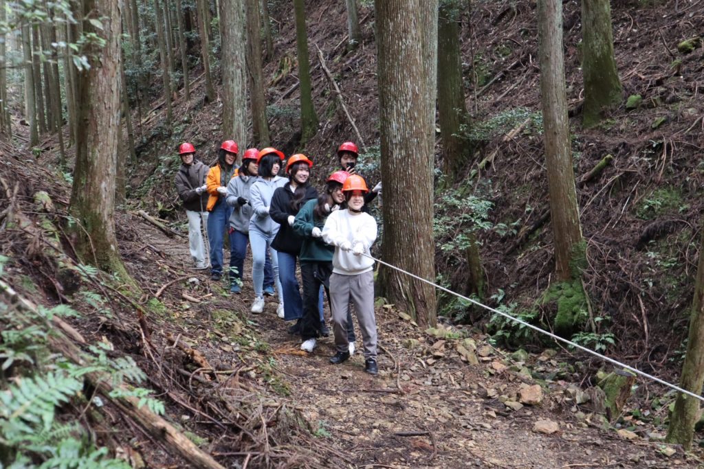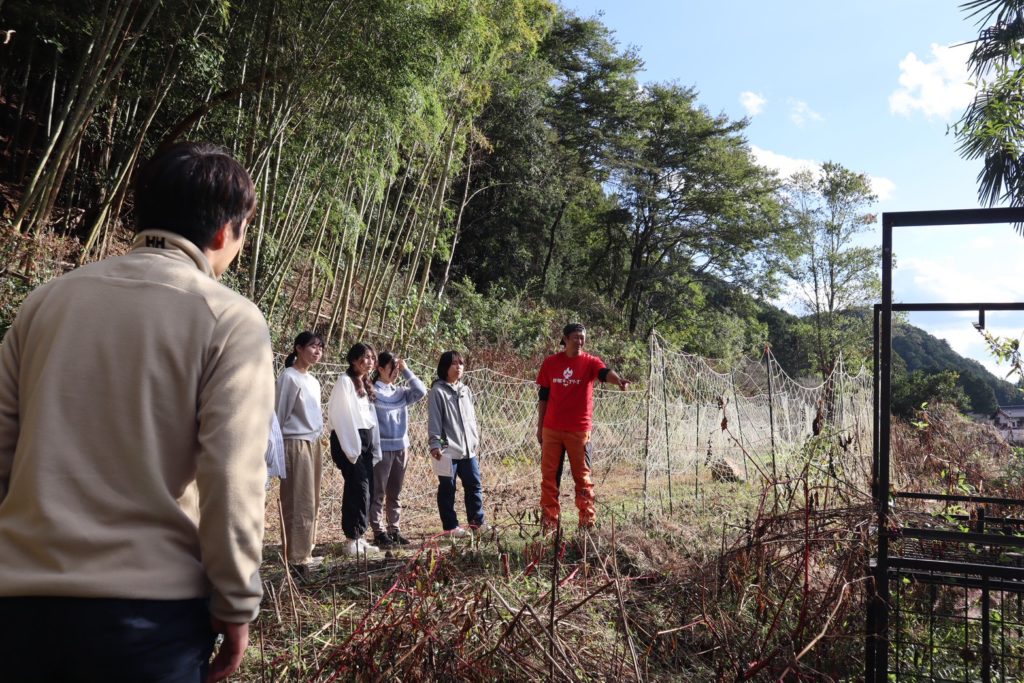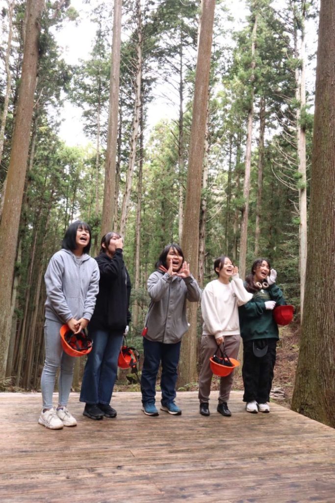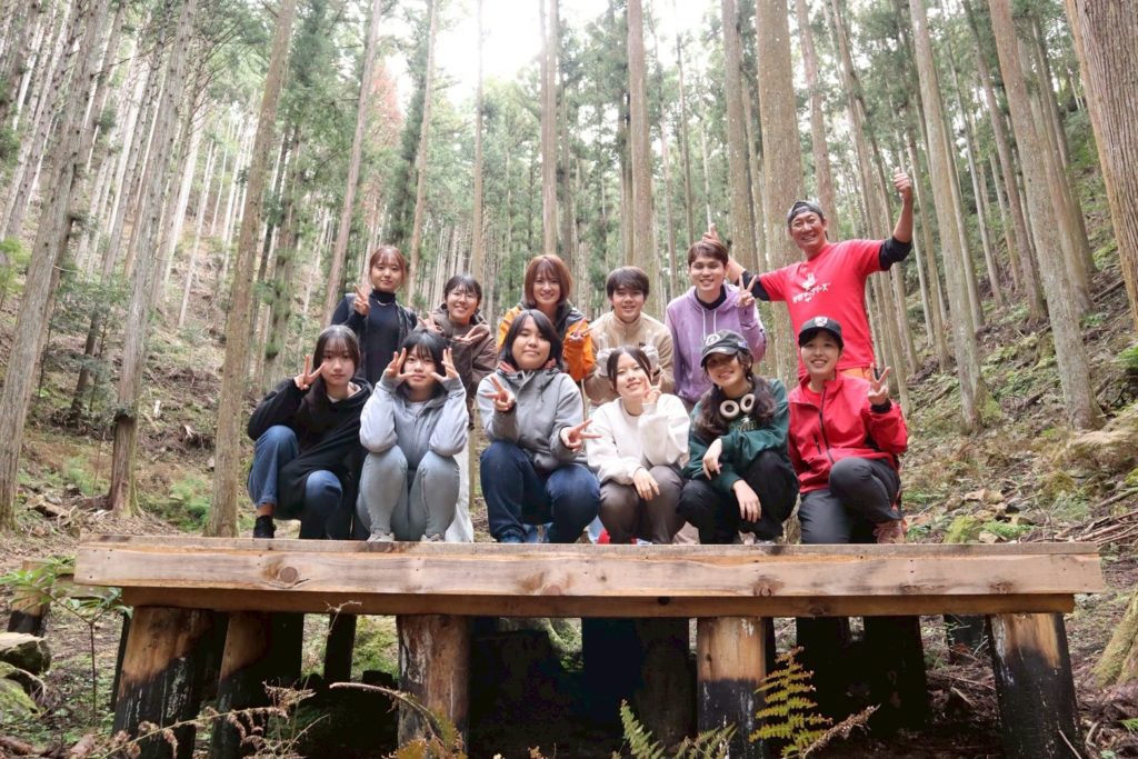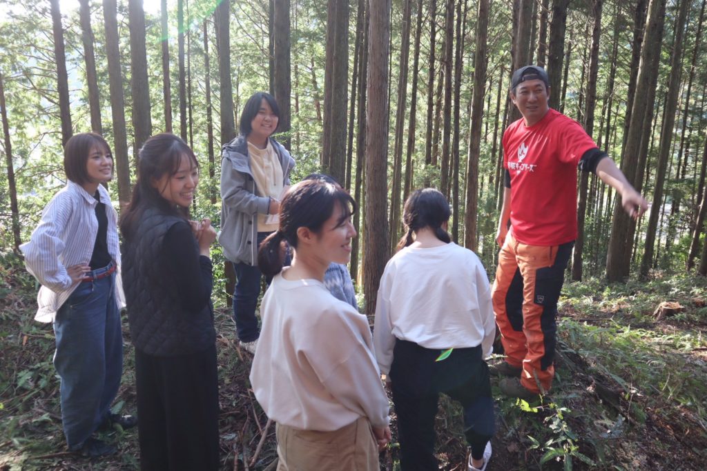 中高生にこの問いを投げかけたのは、新城キッコリーズの田實さん(愛称タジーさん)。今回のツアーをコーディネートしてくださった方です。中高生たちは少し考えて、「木を切って、植えたりする仕事…?」と一言。林業家のタジーさんが聞くのだからそれだけではないんだろうなと、窺うように答えました。