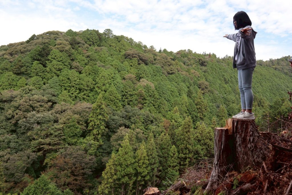 林業って実際何をしているのだろう?という問いをかかえながら森の中に入り、タジーさんが各所で足を止めて話をしてくださいました。時代の流れと共に、森に人の手が入りにくくなっているそうです。木を植えても、木を切っても、それが高く売れるわけではない状況。そうなれば後継者がいなくなっていきます。