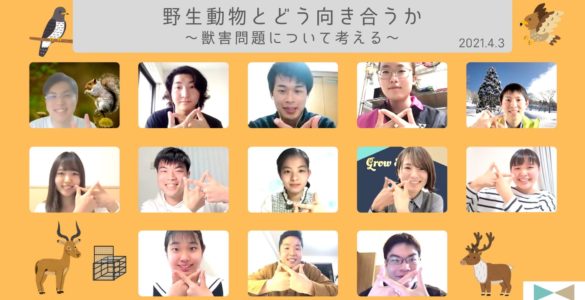 Grow & Leapブログ 2021.4.3 害獣問題について考える 2021.4.3 (sat) こんにちは!小見門です! 2021年4月3日(土)、高校生のIさんと共に「獣害問題とどう向き合うか ~獣害問題について考える~」というイベントを開催しました。 主催者のIさんは、田舎の農家出身で獣害問題に悩まされてきた当事者です。一方で、まるで友達のように一緒に育ってきた動物たちが、「害獣」として扱われることにも問題意識を感じていました。 そんなIさんが掲げるビジョンは、...