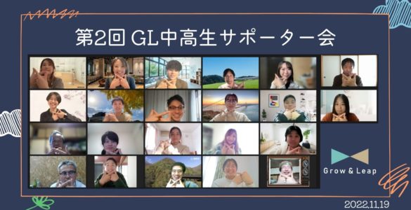 Grow & Leapブログ 第2回GL中高生サポーター会を開催しました! みなさん、こんにちは。GL代表の倉田です!✨2022年11月19日(土)、オンラインにて【GL中高生サポーター会】を開催しました。今回は5月に開催された会に次いで、今年度2回目でした。オンライン上には、リアルタイムで24名が参加してくださり、都合の合わなかった方は録画映像を視聴いただきました。「GL中高生サポーター」とは、「自分と相手の個性を活かし合う幸せな社会を願って、一緒に実現していく」全ての人たちのことをいい、2022年からこの...