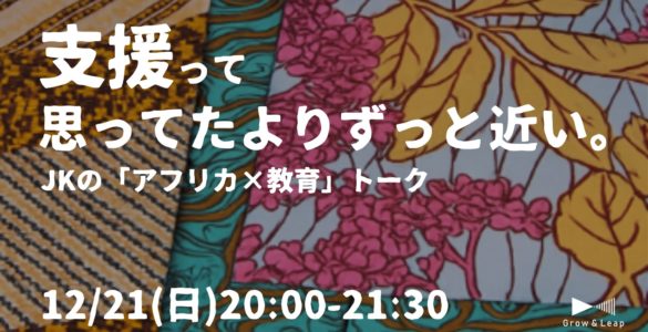 イベント情報 【12/21(日)開催】支援って、思ってたよりずっと近い。JKの「アフリカ×教育」トーク イベント概要 私は日本とはなにもかも違うアフリカに魅了され、未来ある子供たちのために高校では一人で衣類回収をしたり、マリの特産品をバザーで売ったり⋯1年半をアフリカに捧げてきました。そして子供達の事を考える中でたくさんの課題が見えてきました。 それから従来の「支援」の定義に疑問を持つようになり、私なりに理想の支援、教育について考えてきました。みなさんにとっての教育、支援について聞かせてください!! こんな方におすすめ...